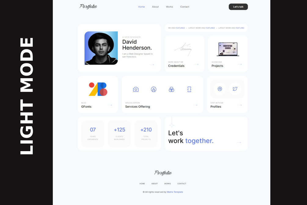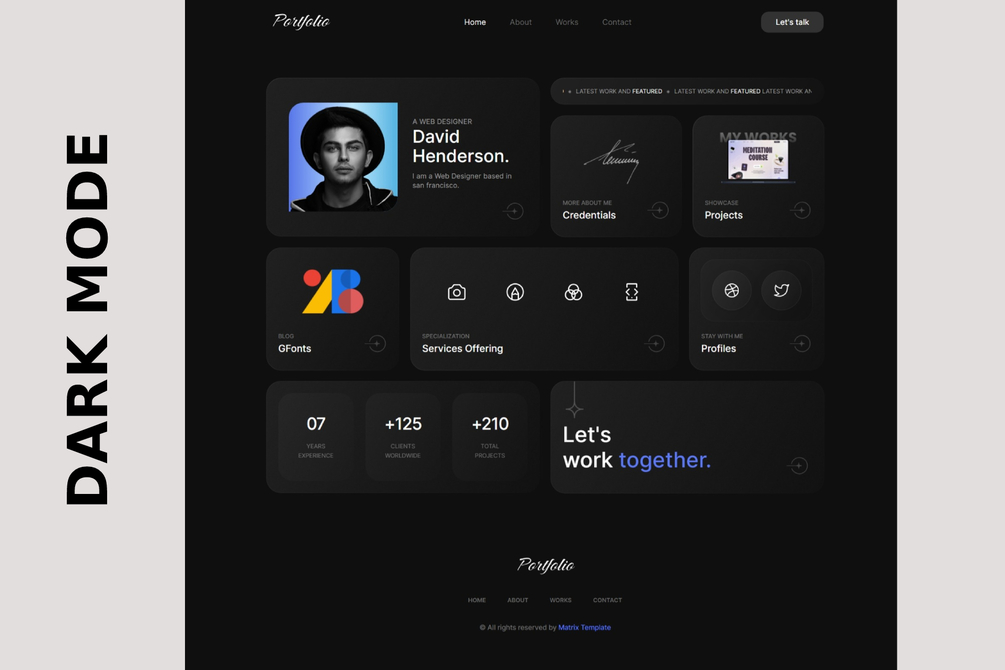 HTML5 - Portfolio Website - Designer, Developer, Freelancer, Graphic Designer$9+$9+https://schema.org/InStockusdMatrix TemplateMatrix TemplateLIVE DEMOEnjoy your theme! If you have any questions, mail me at admin@matrixtemplate.onlineName a fair price:$Add to cartPremium WebsiteSize3.91 MBAdd to wishlist New wishlistShare on XShare on Facebook Copy linkCopy product URLNo refunds allowed